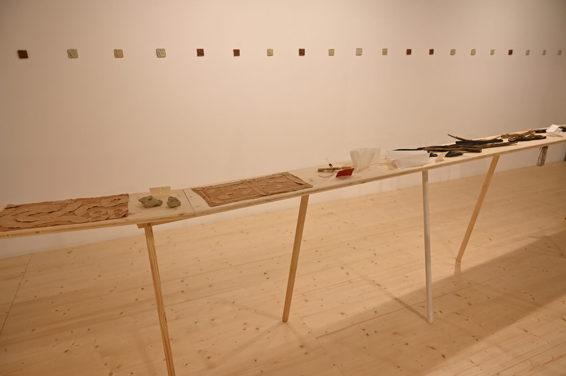 パヨの作品は、収集や織りを通して初期の繊維技術を探求し、マリーニは現代の生活における「実用性」という概念とその意味を考察しています。見つけ出した素材は、彼らの共同探求における重要な要素であり、プロセスや道のりの重要性を強調しながら、しばしば即興的な表現を促しています。