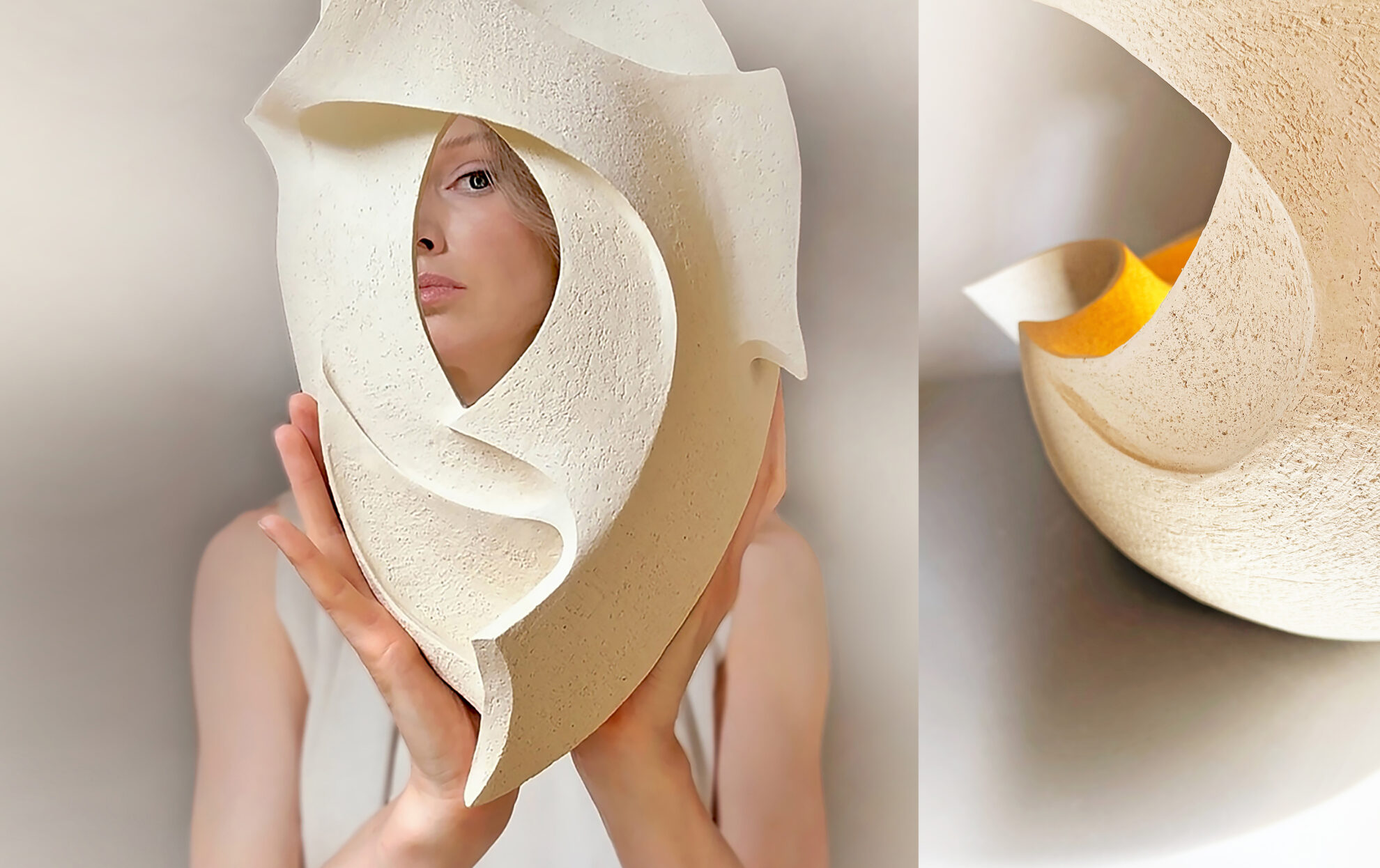 Through her sculptural forms she invites you to embark on a poetic journey into your inner world. Very gentle, not intrusive, quiet, very deep but full of light and silent poetry.