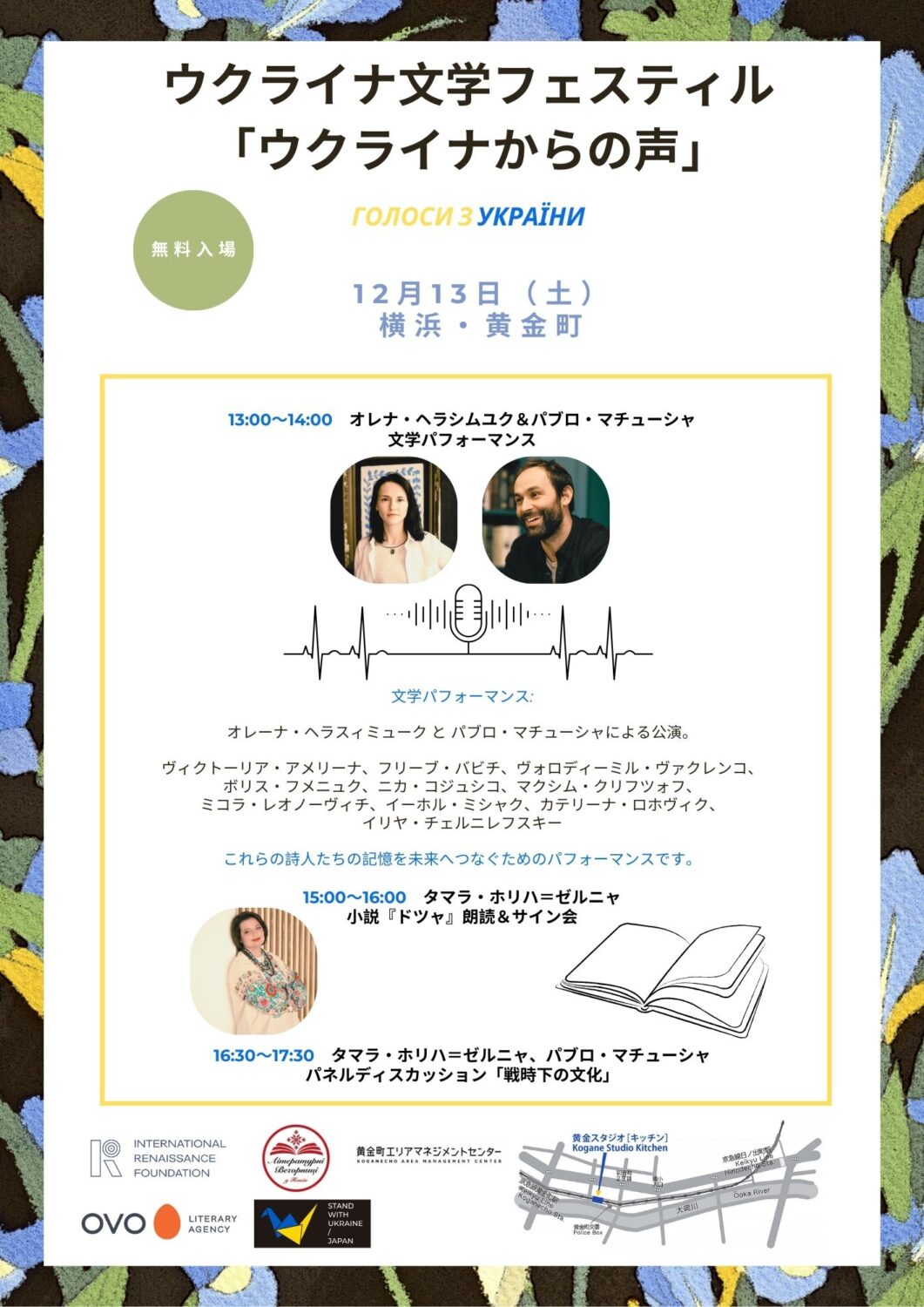 ・13:00–14:00 — Literary performance by Olena Herasymiuk and Pavlo Matiusha