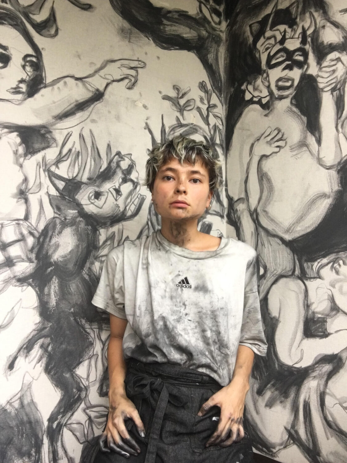 1996年福岡生まれ、ブリュッセル育ち。2021年ウルビーノ美術大学版画科修士課程修了。2022年から2024年まで黄金町AIRに参加。数年間にわたる絵画、彫刻、エッチングの勉強と経験を積んでから、私は自分がドローイング(日本語なら“お絵描き”に近い)に戻っていくのがわかった。それは、日々のスケッチから、オイルパステル、ペン、水彩、鉛筆を使ったドローイング、壁画、肖像画、ライブ・ペインティング、インディペンデントな出版活動にまで及ぶ。