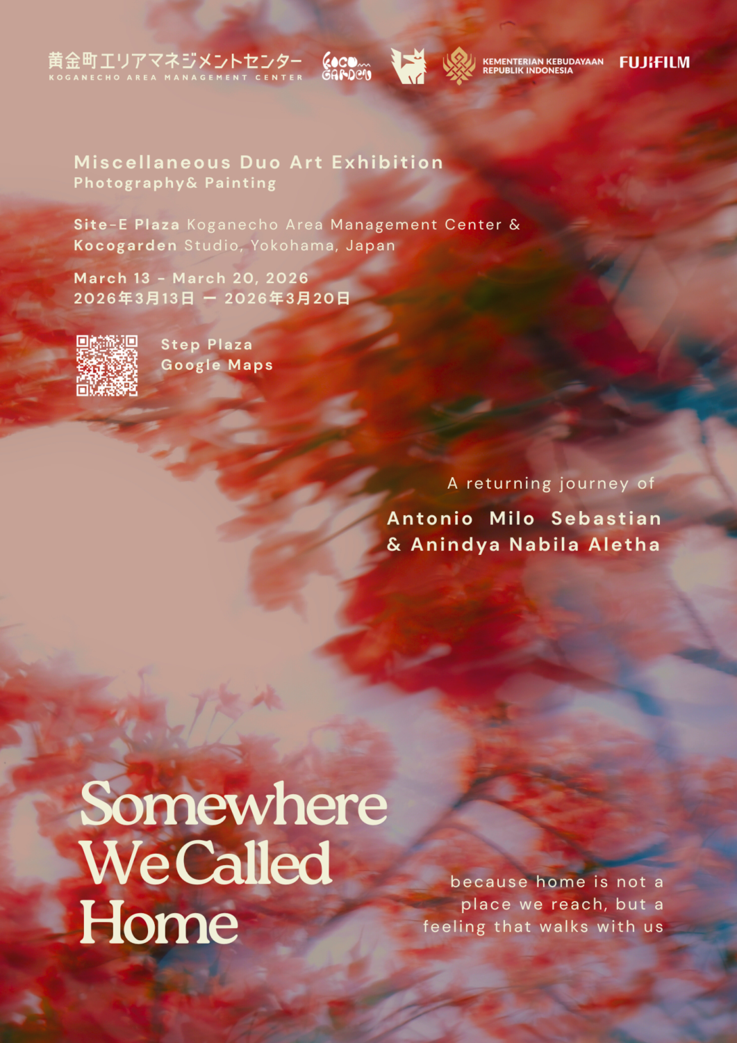 「Somewhere We Called Home」 は、Antonio Milo Sebastian と Anindya Nabila Aletha Zulham による二人展であり、「家」という概念を空間的・建築的な枠組みを超えて捉え直す試みです。本展では、家は特定の場所や建築によって規定されるものではなく、むしろ感情的で関係性によって形成される空間として理解されます。人との出会い、記憶、そして互いを認め合うことによって形づくられる空間であり、ときには、見知らぬものに満ちた世界の中で受け入れられているという感覚が、静かな瞬間の中から立ち現れることもあります。