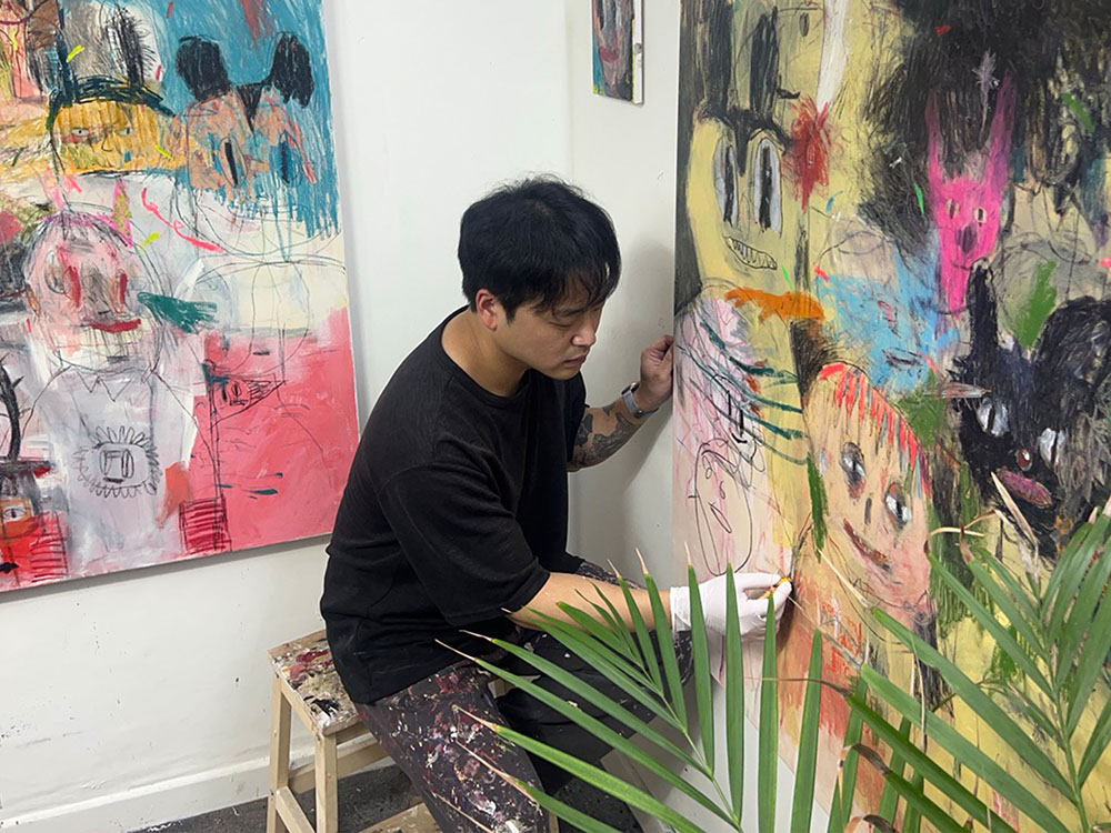 2021年、韓国・光州の朝鮮大学校美術大学現代彫刻・メディア専攻卒業。以降、光州とソウルを拠点に活動を続けている。おとぎ話のようなイメージや物語的な手法を用い、現実と幻想のあいだに生じる不安定さや、幻想的なイメージを追い求める現代の欲望に関心を寄せている。イメージと語りの間に揺らぐ認識のあり方をテーマに作品を展開している。
