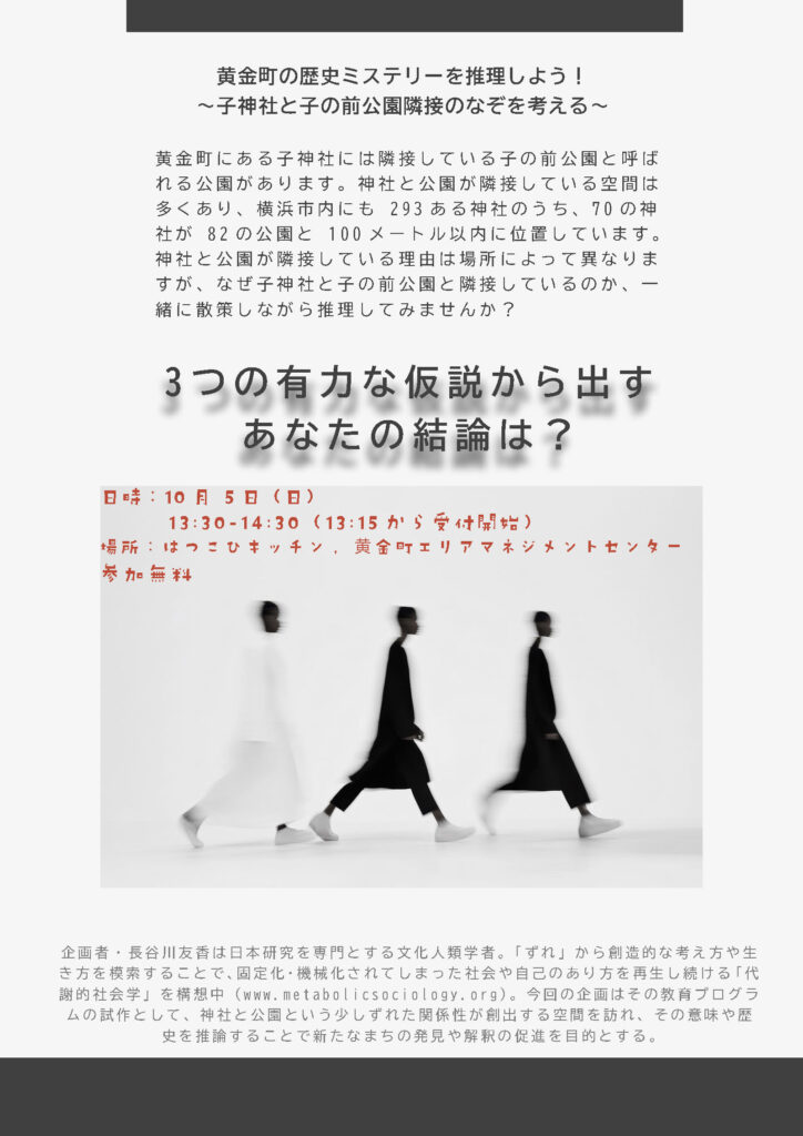 【終了】【広報協力】黄金町の歴史ミステリーを推理しよう! ~子神社と子の前公園隣接のなぞを考える~