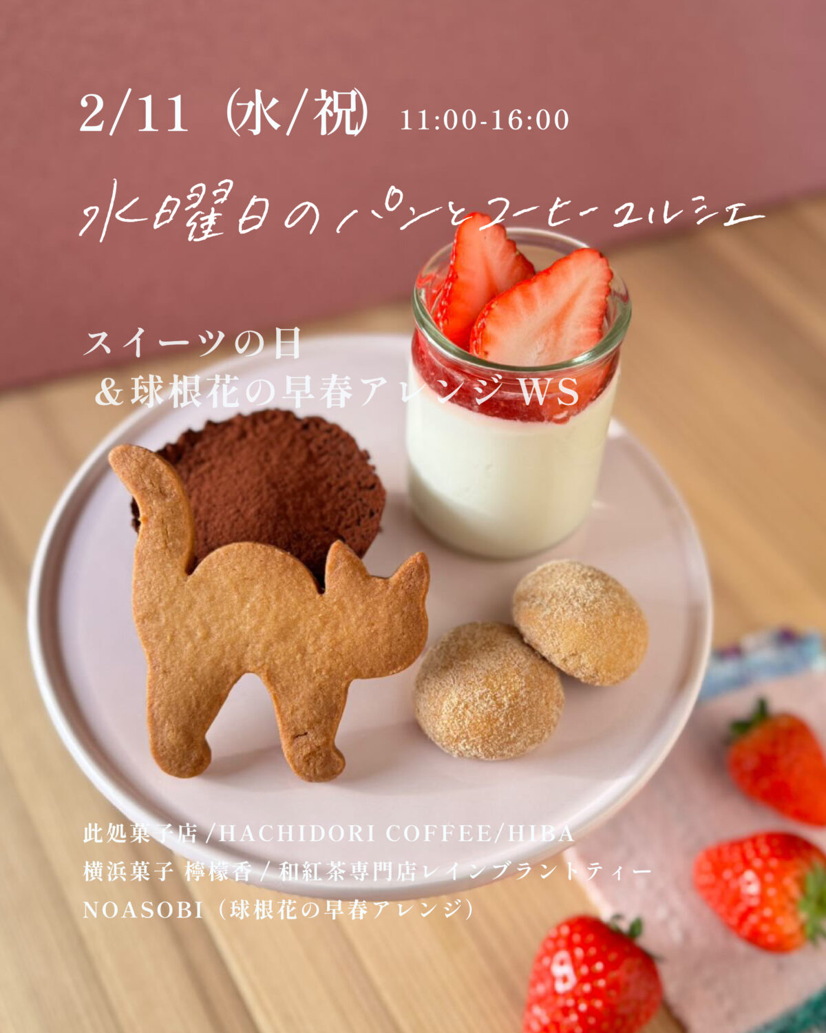 ◯2月11日(水/祝)スイーツの日&球根花の早春アレンジWS