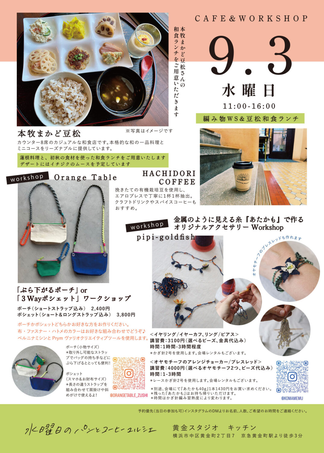 ◯9月3日 (水)編み物ワークショップ&本牧まかど豆松