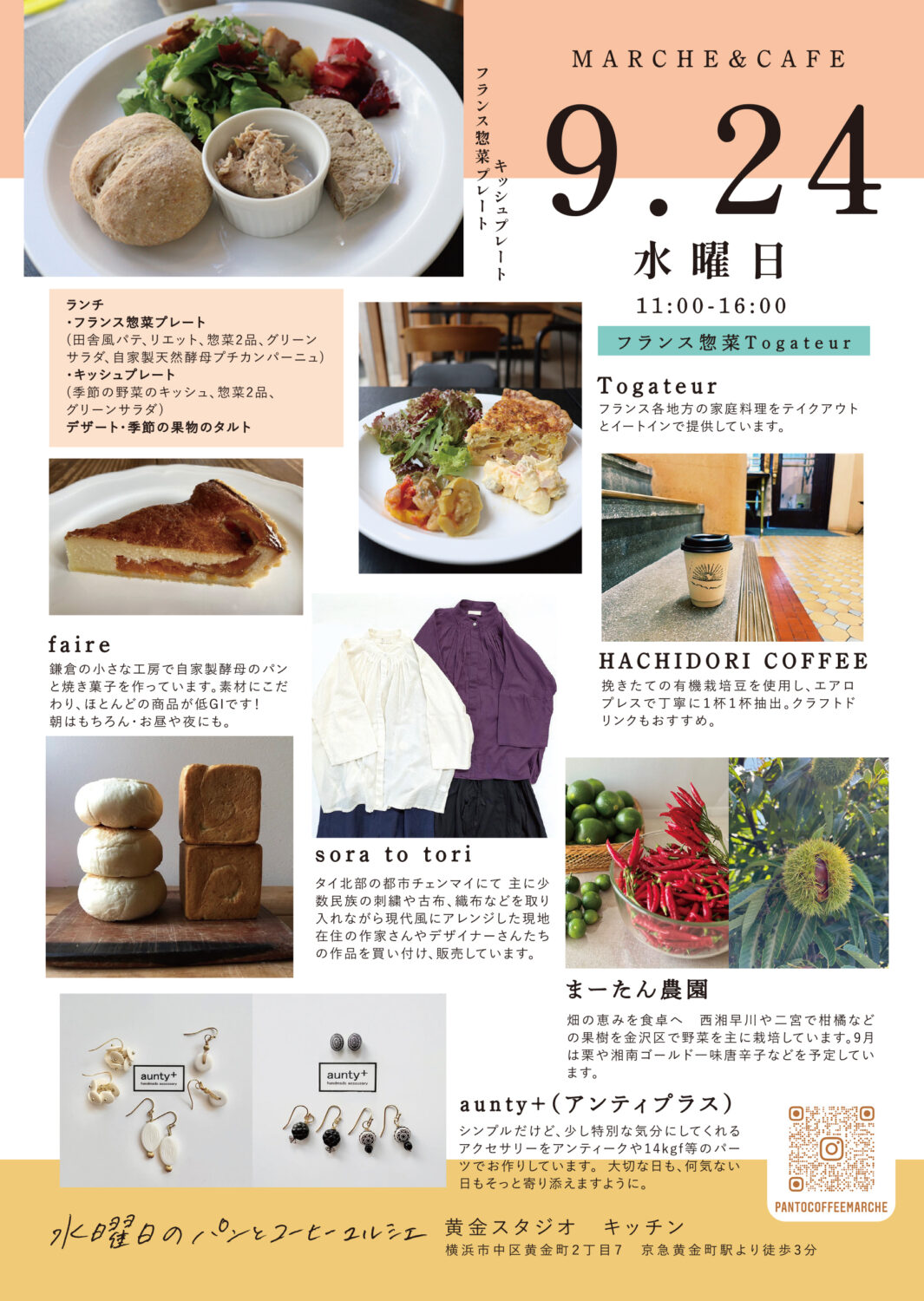 ◯9月24日(水)マルシェ&カフェ フランス惣菜Togateur